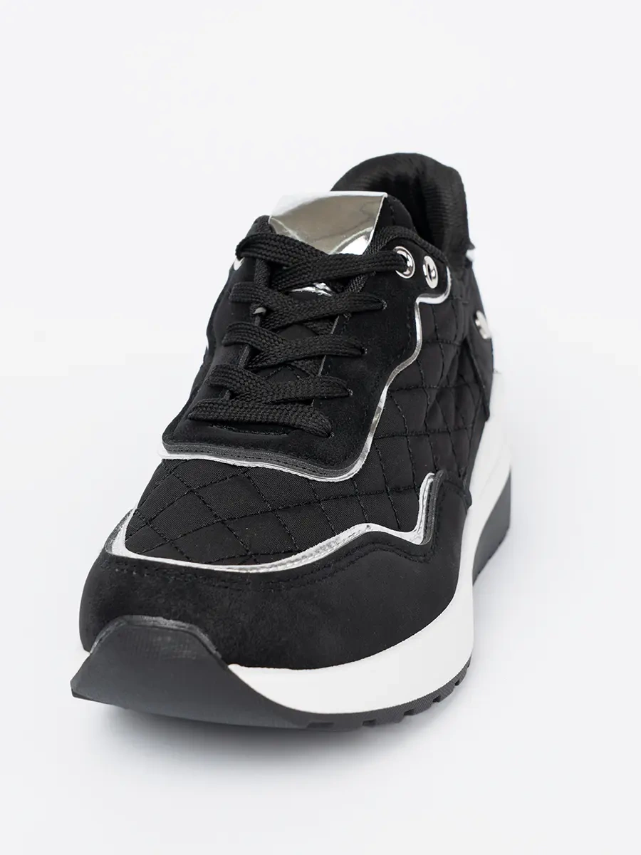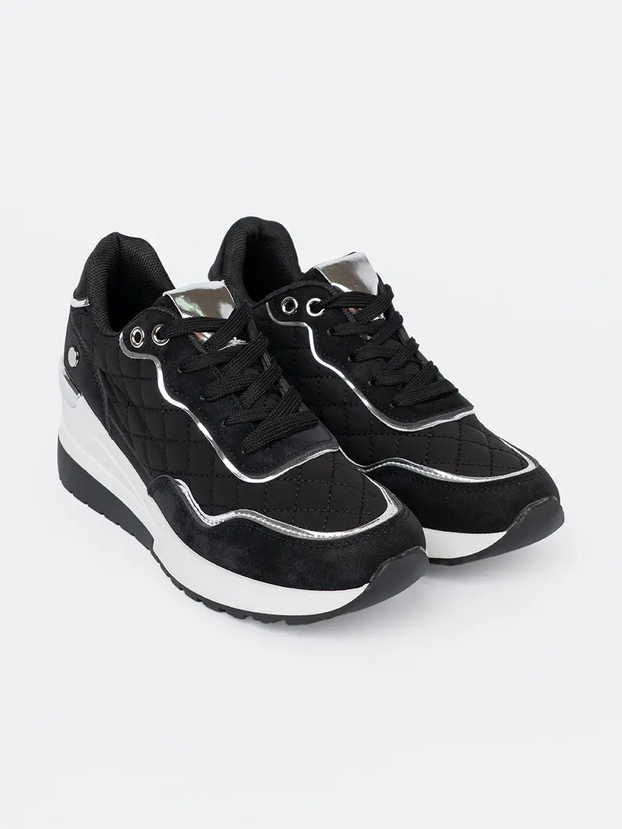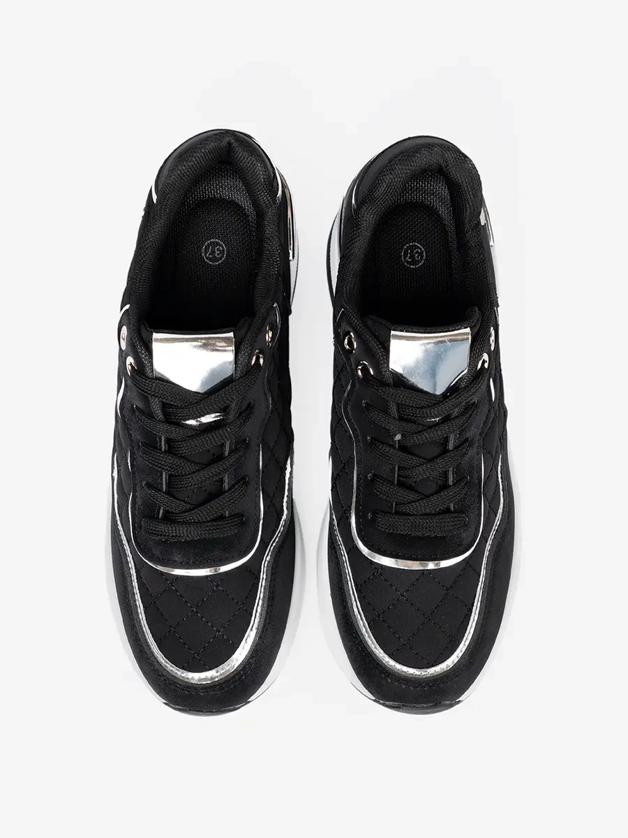 Tyto sneakersy jsou vyrobeny z kombinace kvalitní imitace kůže a textilu, které dodávají botám elegantní vzhled. Černá barva je univerzální a snadno se kombinuje s různými outfity. Díky koturnovému podpatku získáte na výšce, aniž byste obětovaly pohodlí.