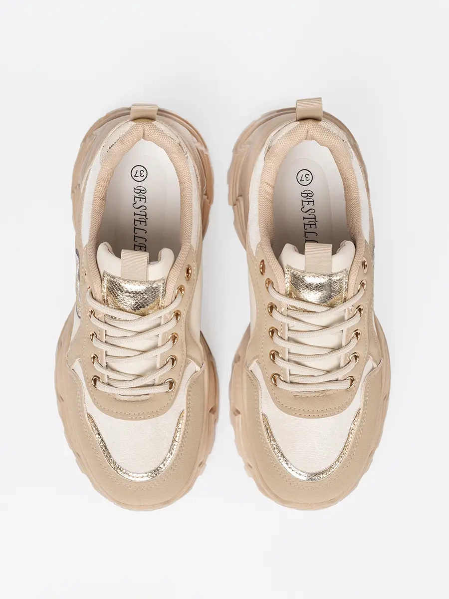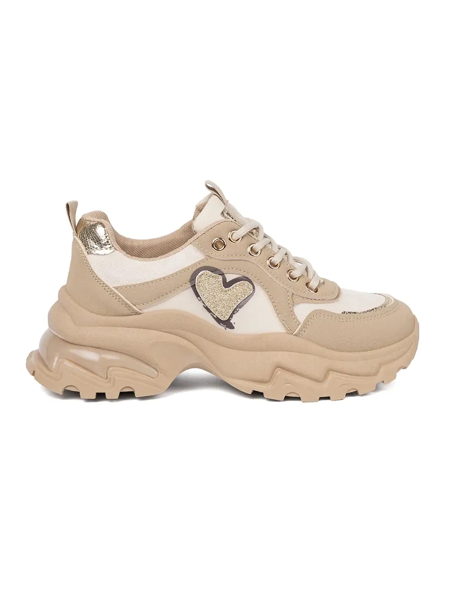 Béžové sneakersy s ozdobným zlatým srdcem