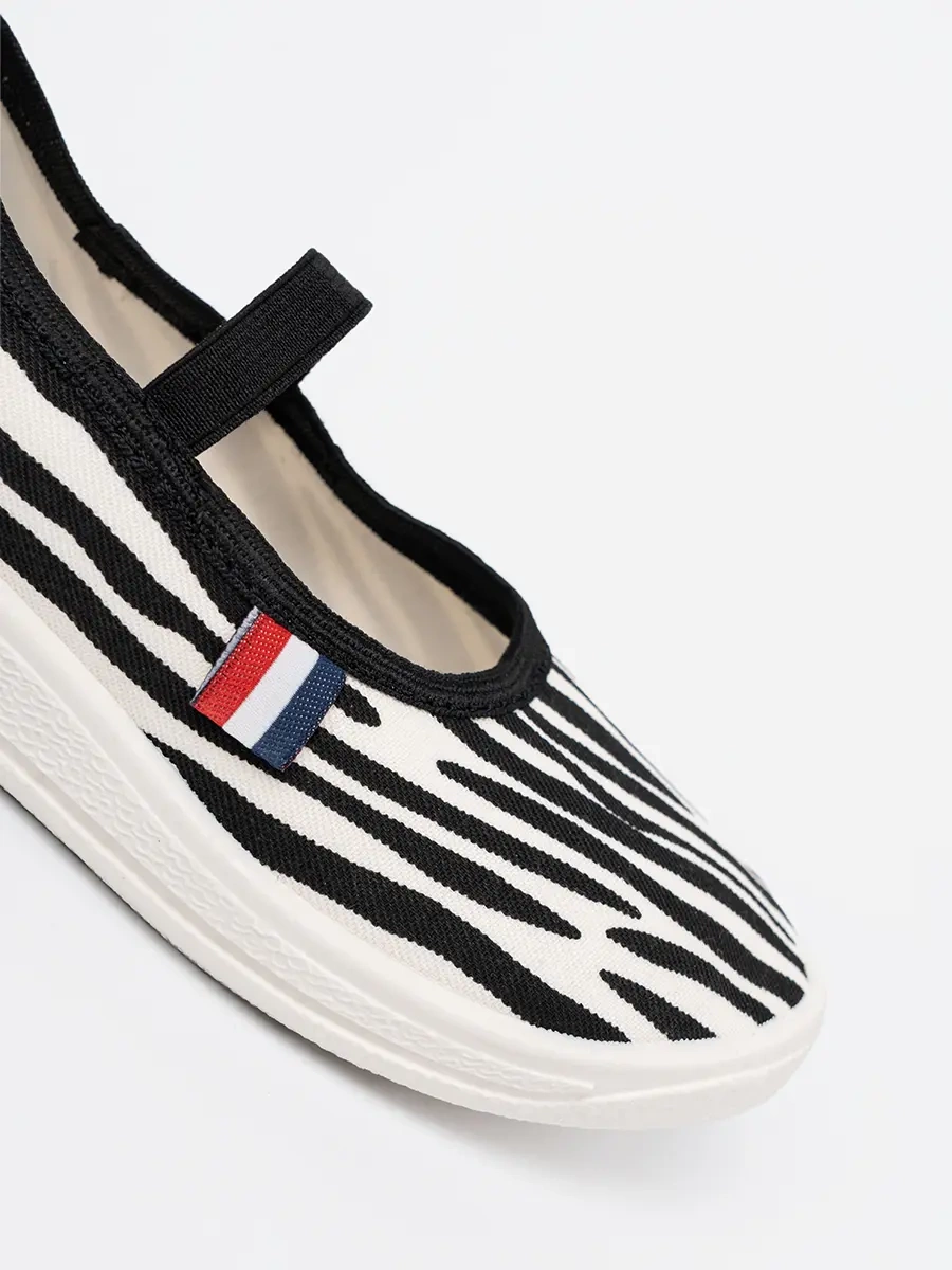 Černo-bílé nazouvací tenisky se zebrovým motivem