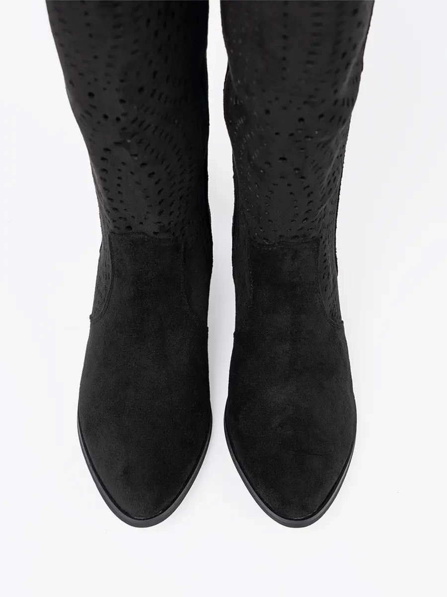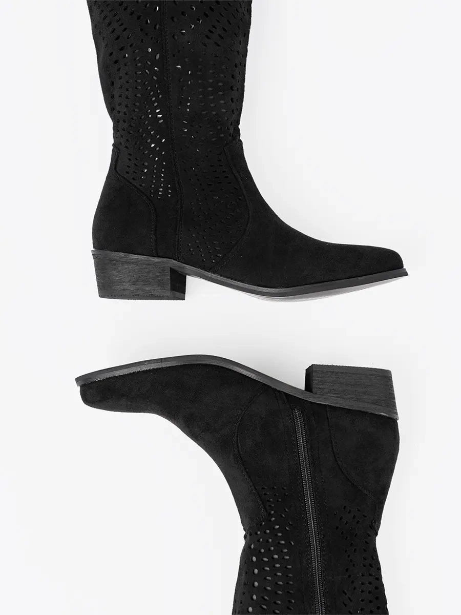 Černé ažurové kozačky ve stylu kovbojek