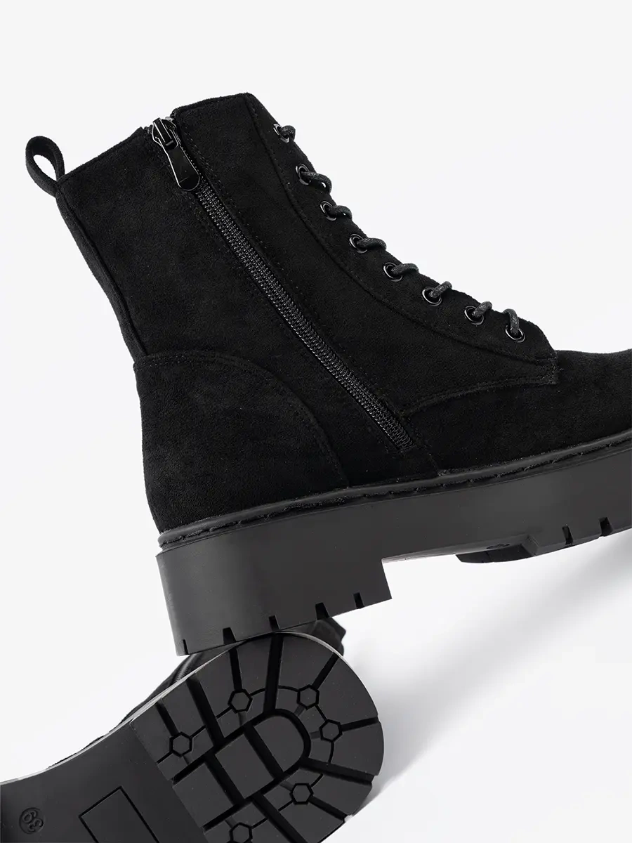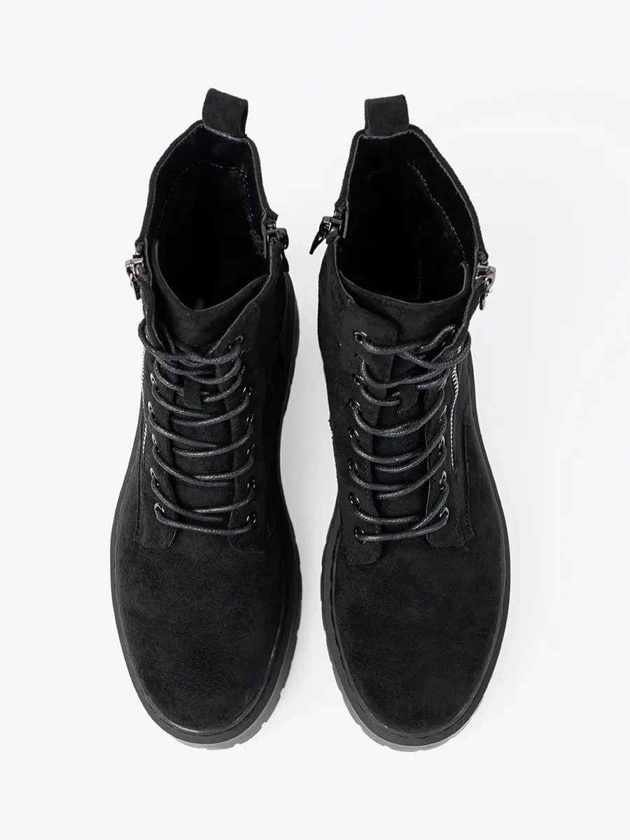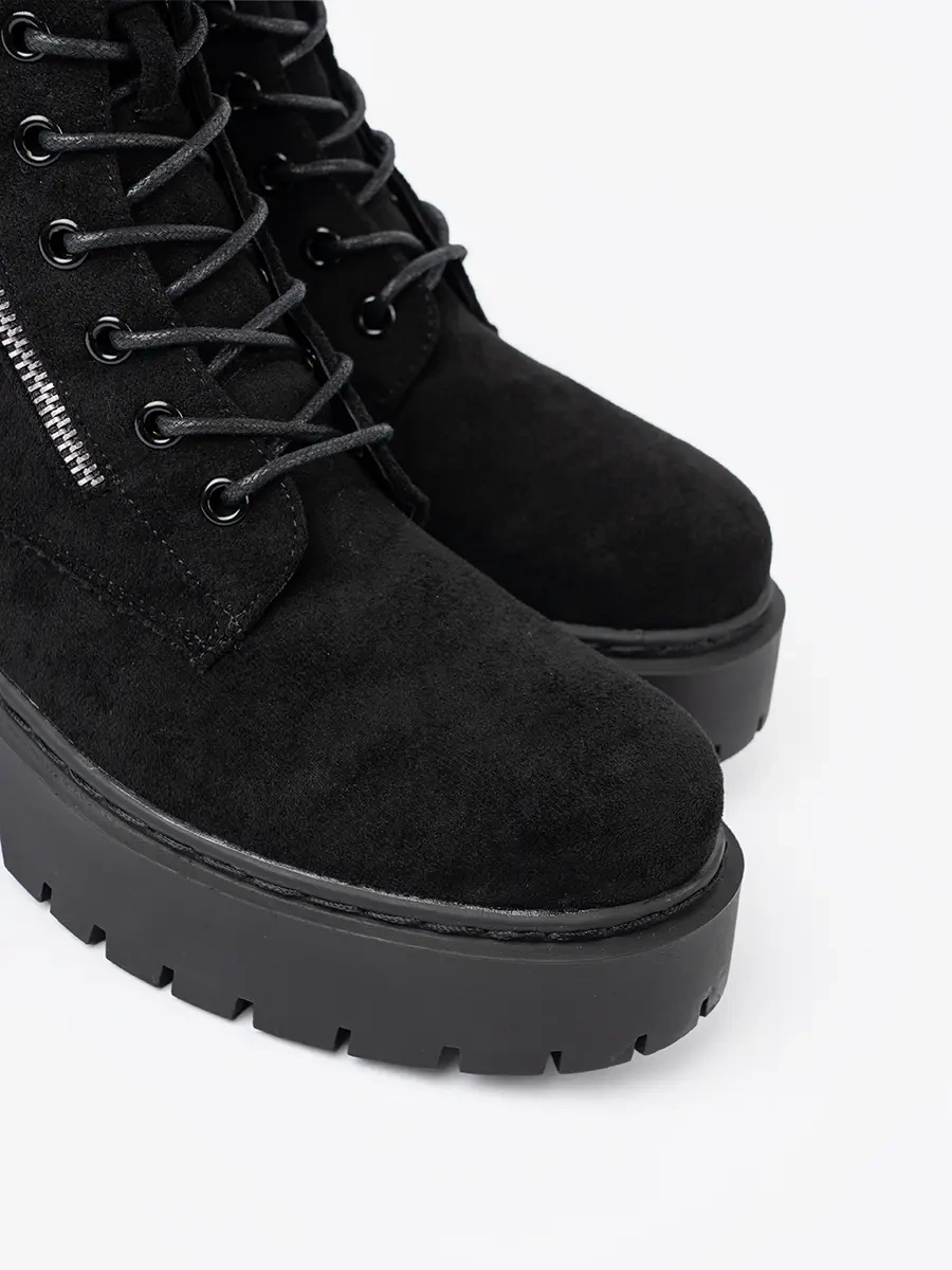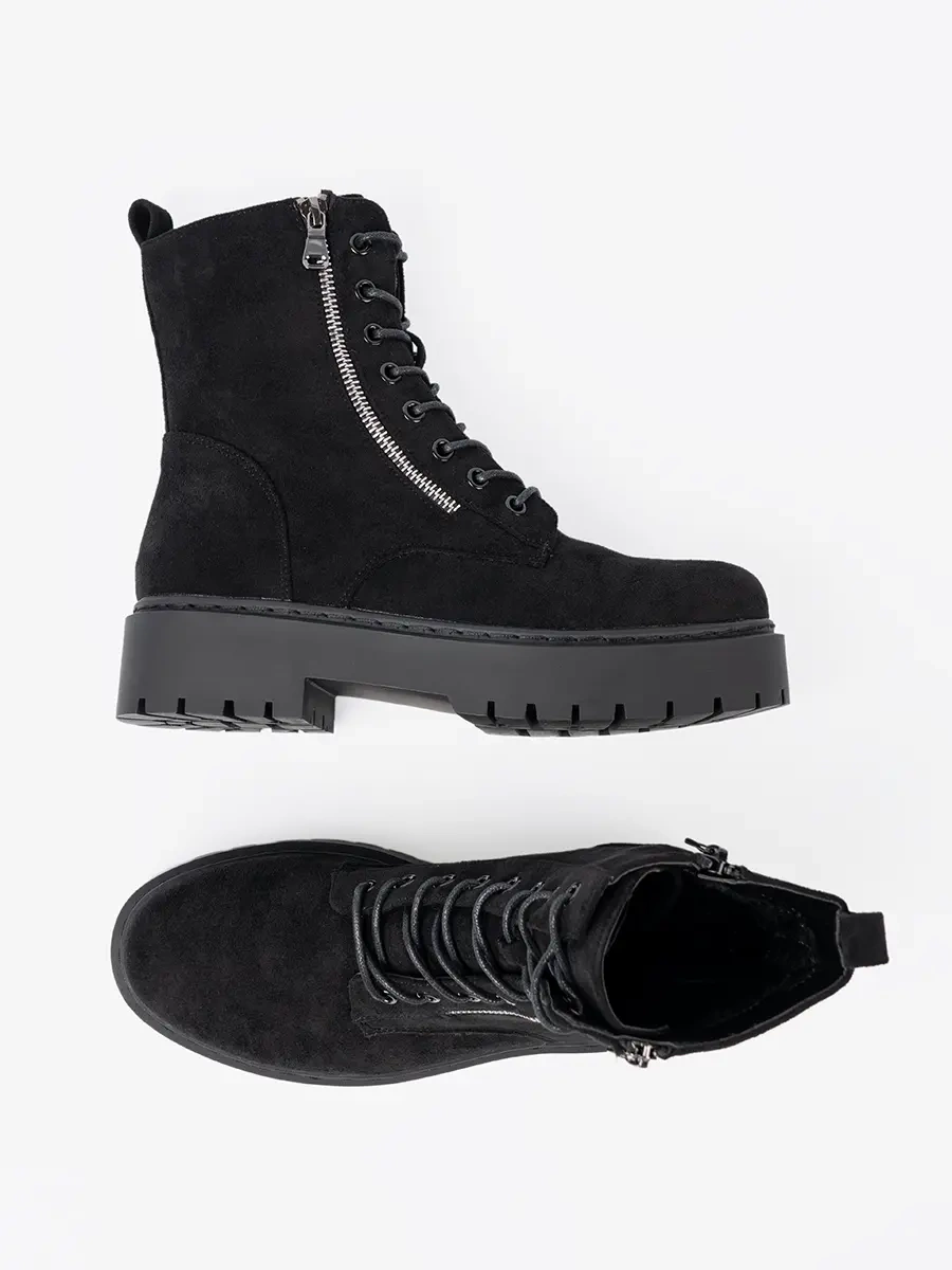 Přestože jsou tyto trapery špičkové a elegantní, byly navrženy s ohledem na maximální pohodlí. Uzavřená a zpevněná špička, pohodlná textilní stélka a stabilní platformový podpátek zaručují komfort při nošení po celý den. Zavazování na tkaničky umožňuje přizpůsobení obuvi vašemu chodidlu pro ještě větší pohodlí.