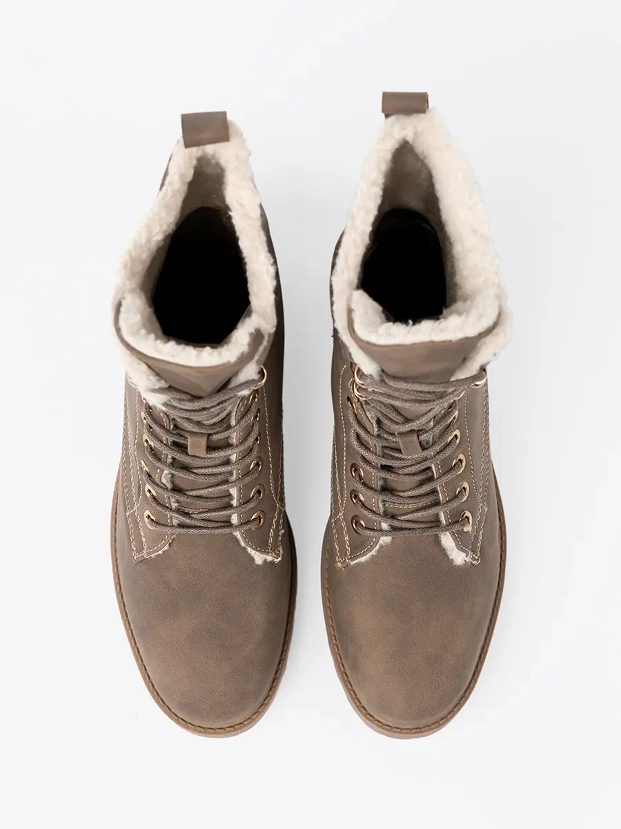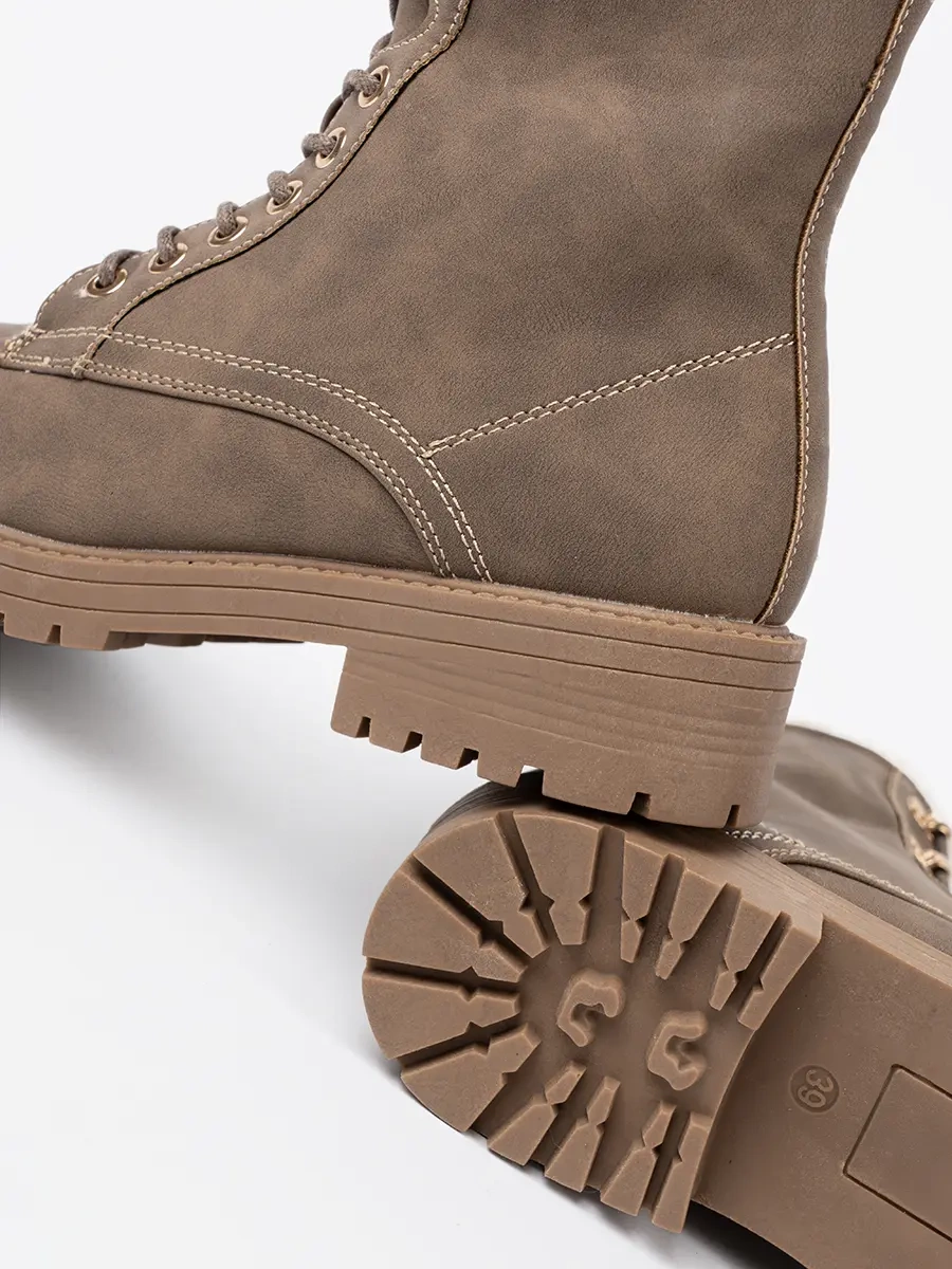 Stylové tmavě béžové traperky s hrubou podrážkou