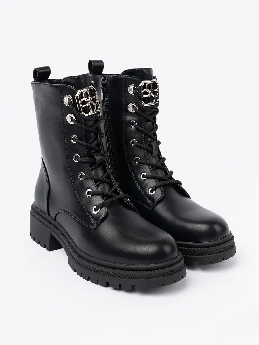 Černé dámské workery s metalovou ozdobou - elegancí za každých podmínek