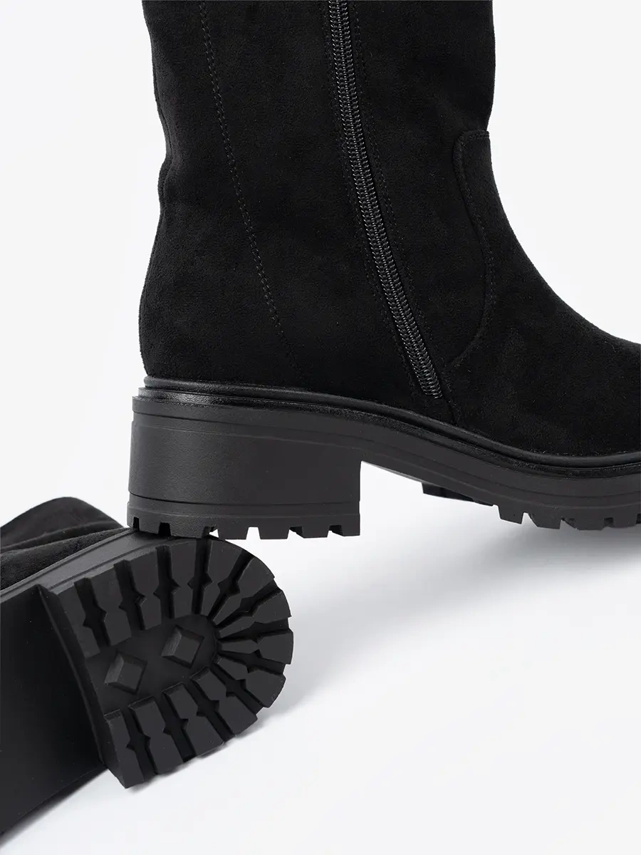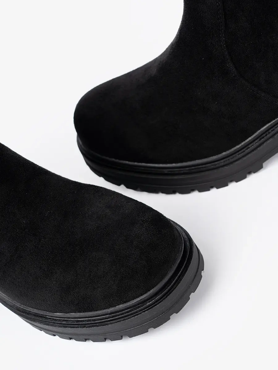 Naše černé botky na platformě byly vytvořeny pro ženy, které si cení luxusu a pohodlí. Jsou vyrobeny z vysoce kvalitní imitace zamszu, takže nejenže vypadají úžasně, ale také dlouho vydrží. Černá barva jim dodává charakter a hodí se jak k elegantním, tak i ležérním outfitům.