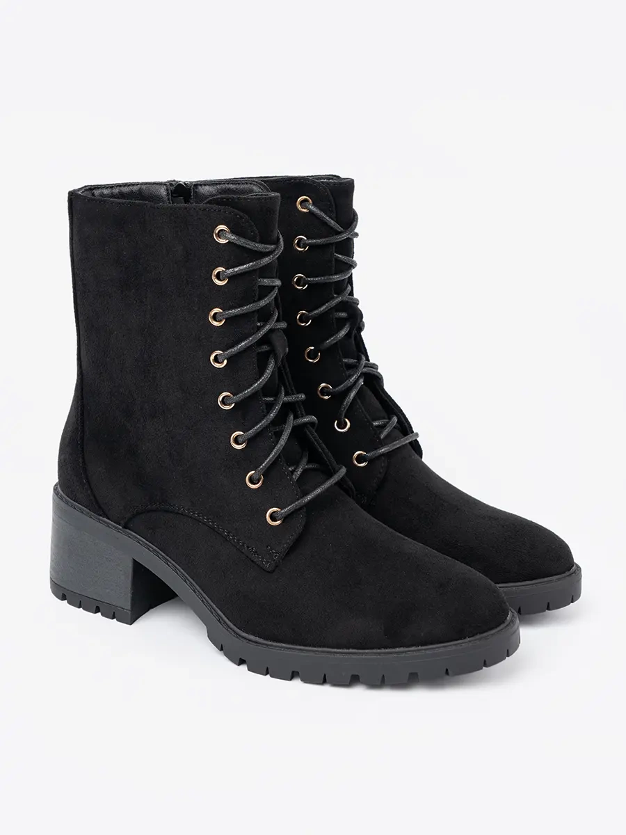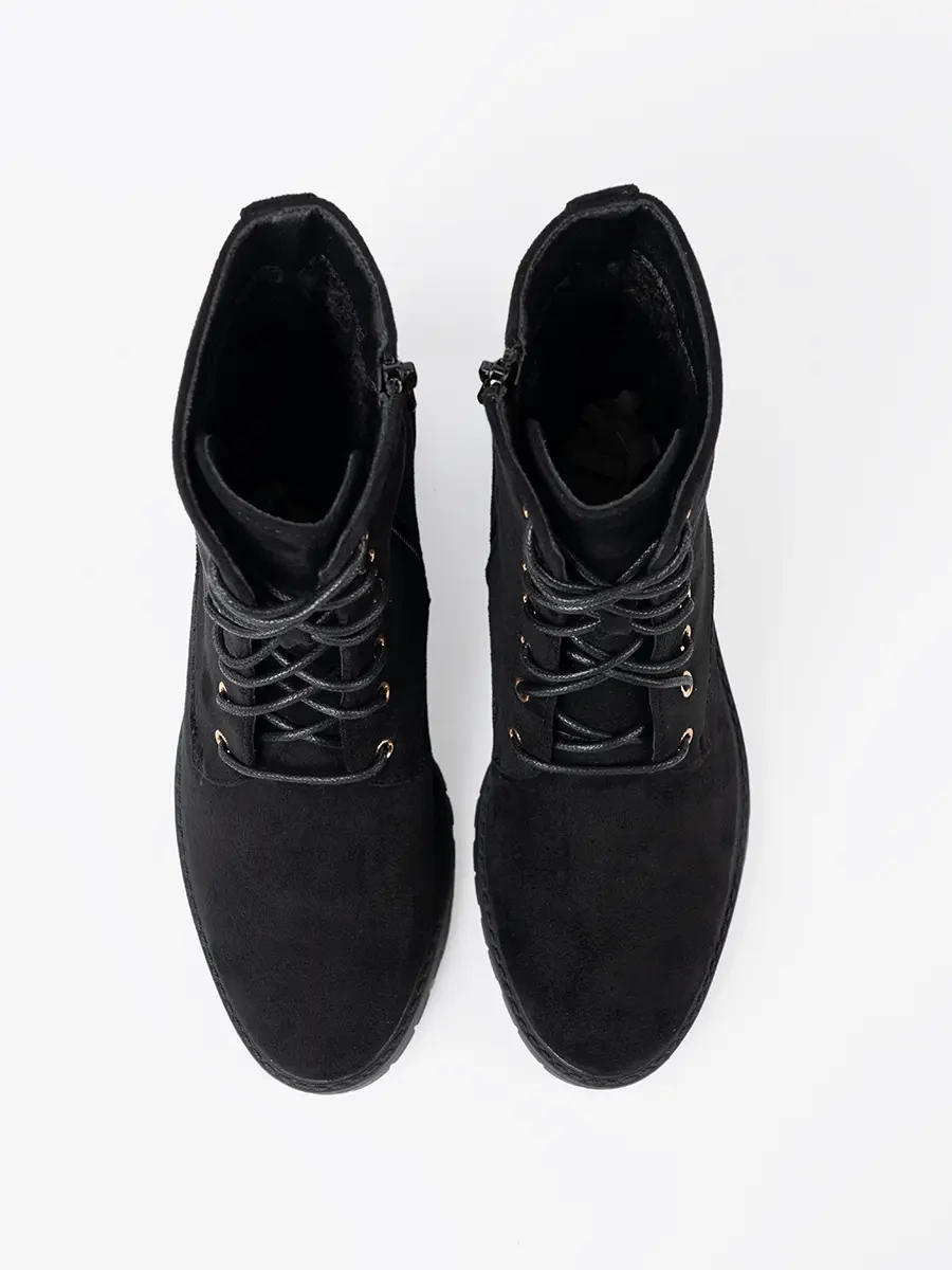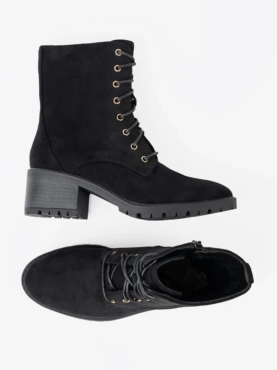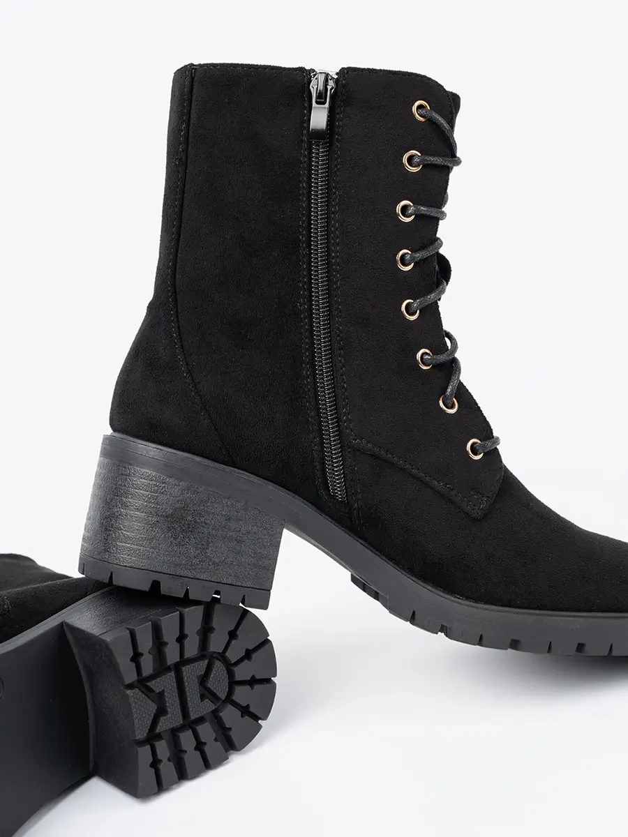 Naše černé botky jsou vyrobeny z vysoce kvalitní imitace zamszu, která je odolná, dlouhodobě vydrží a přitom vypadá luxusně. Okrouhlá špička dodává botkám sofistikovaný vzhled a černá barva je činí univerzálním doplňkem do vašeho šatníku. Vhodné jak pro formální, tak i pro volnočasové nošení.