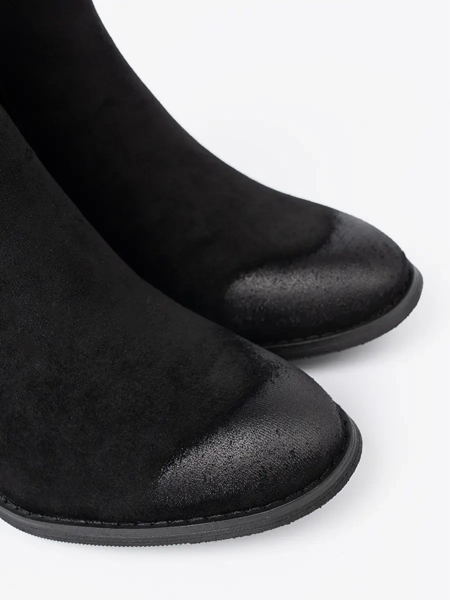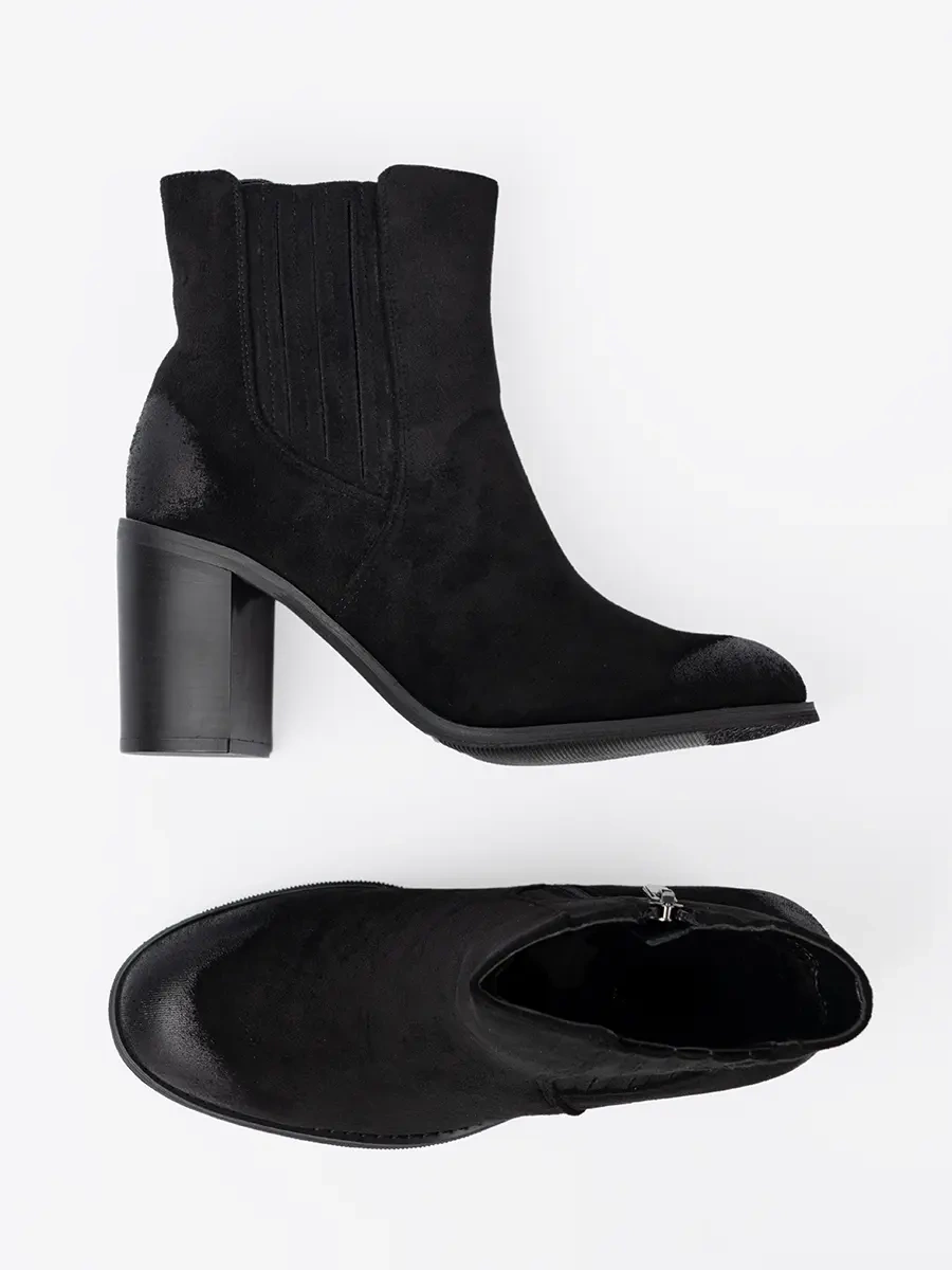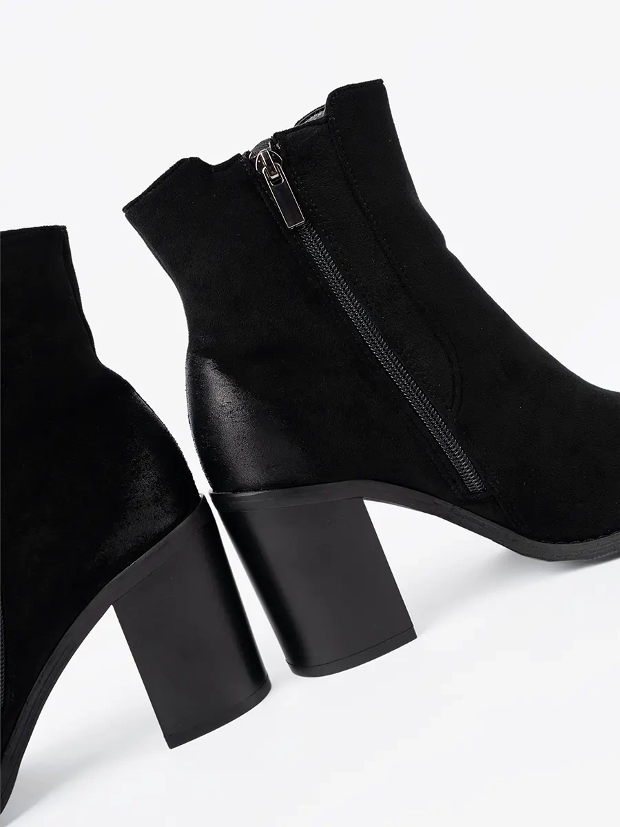 Černé zamszové botky na vysokém sloupku - moderní elegance pro každý den