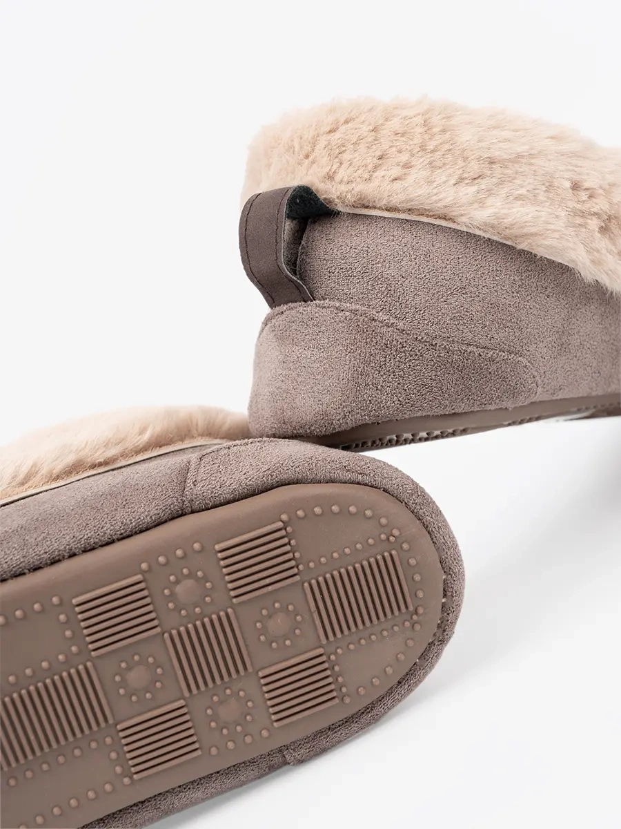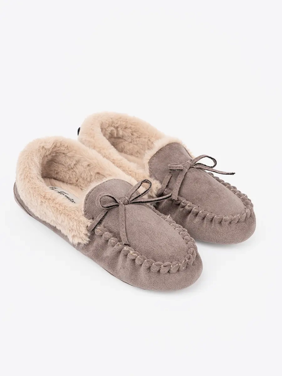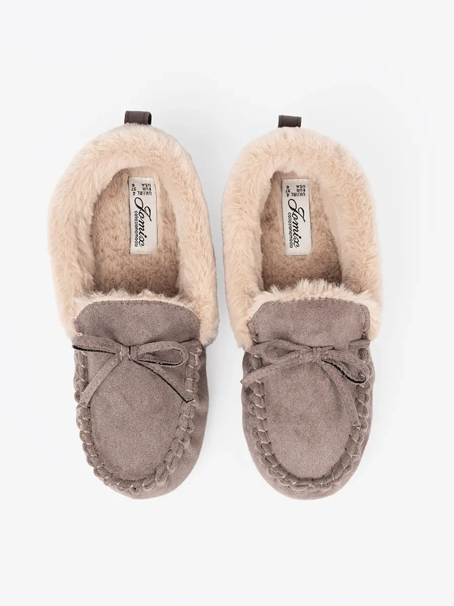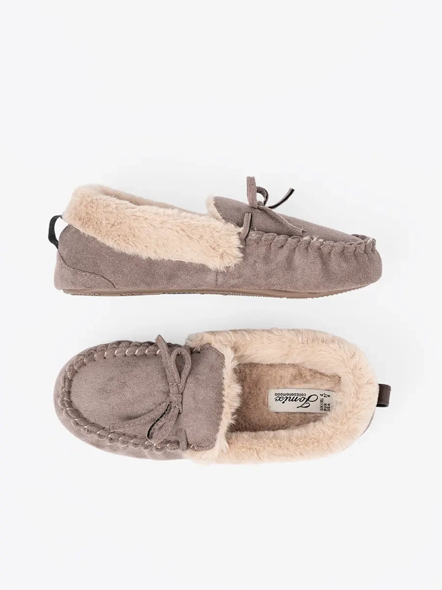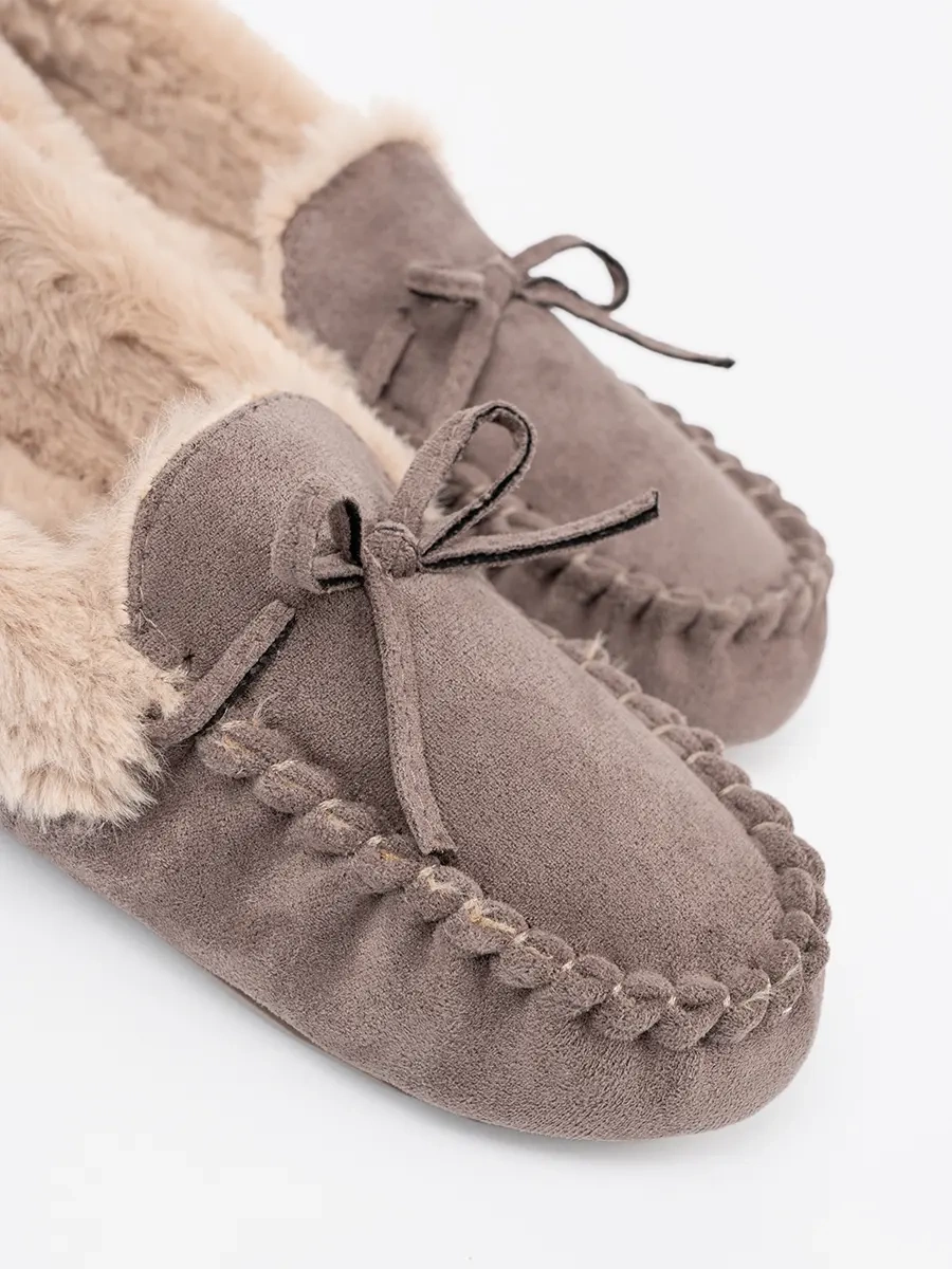 Tmavě béžové pantofle s mašlí a měkkým vnitřkem typu mokasín