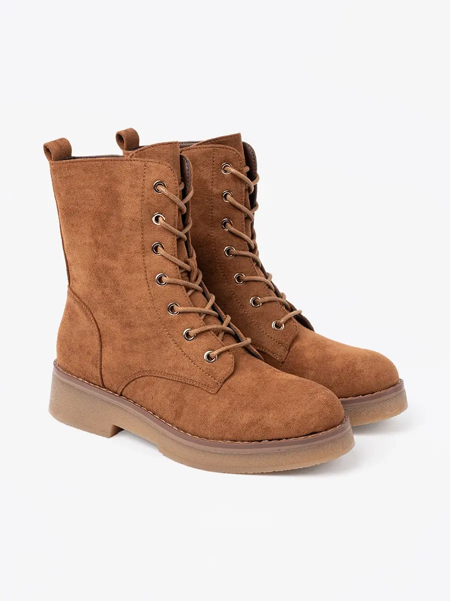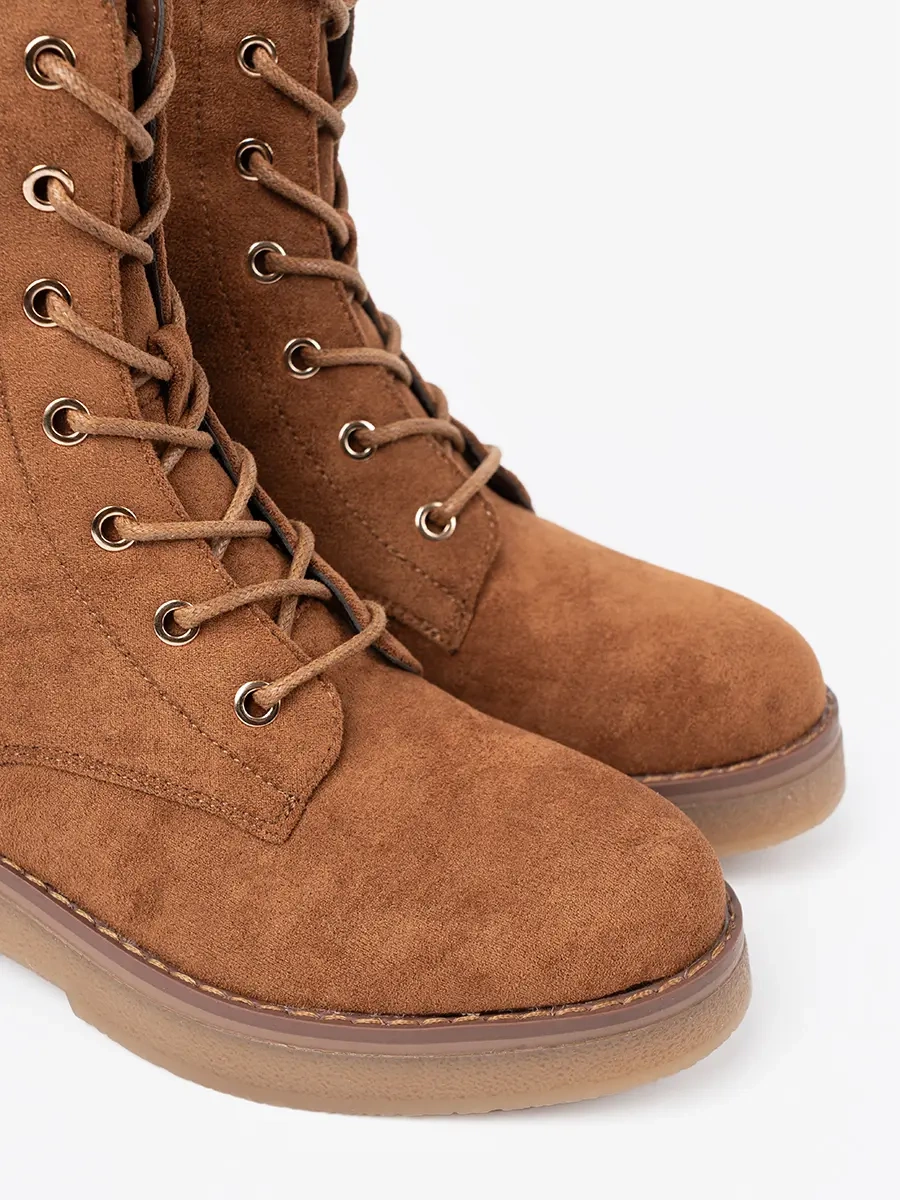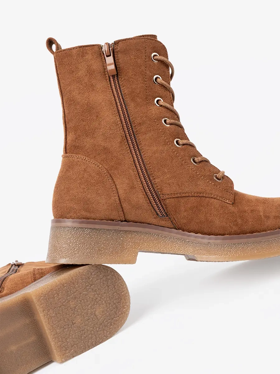 Pohodlné workery v karamelové barvě na ploché podrážce