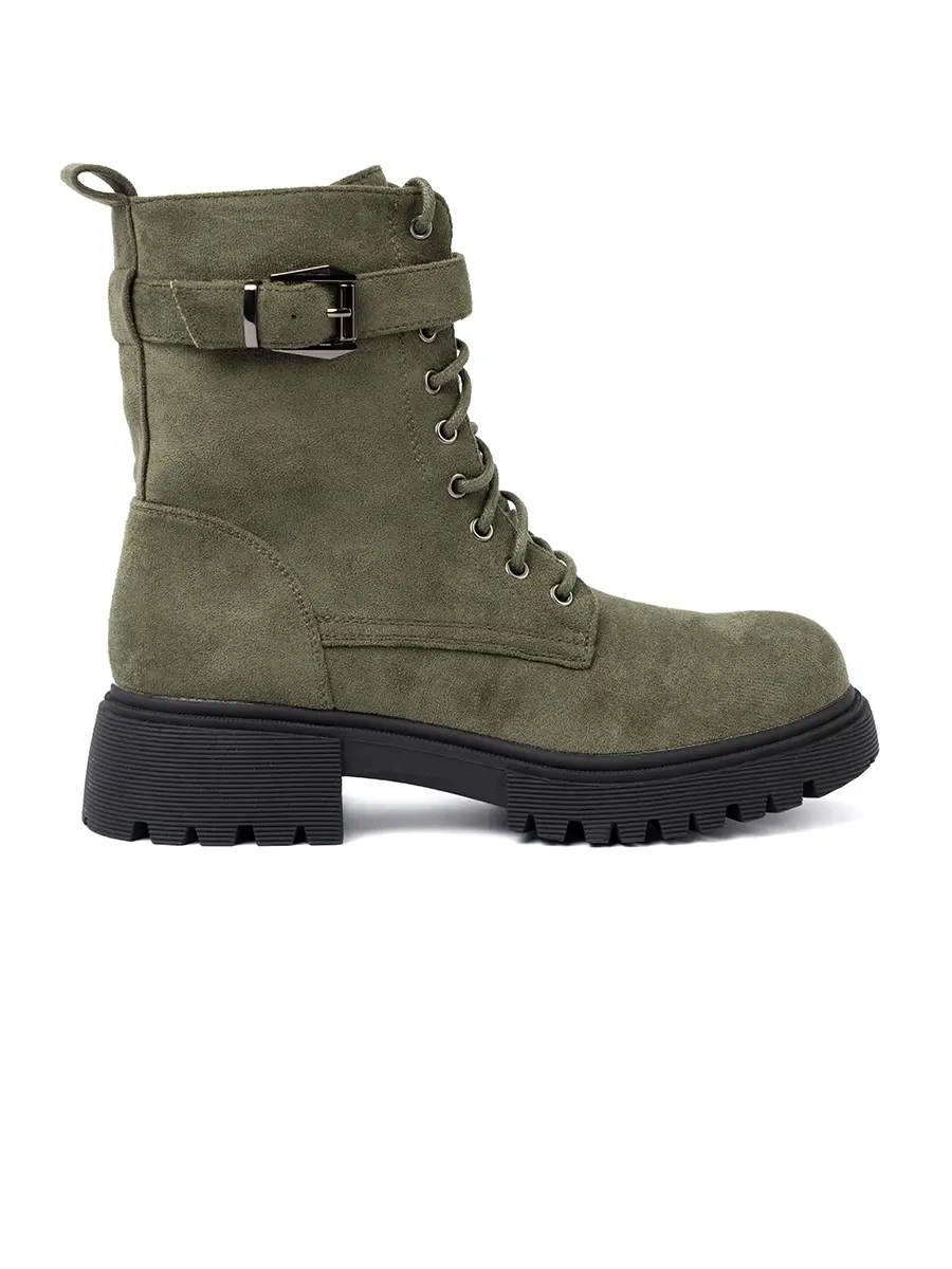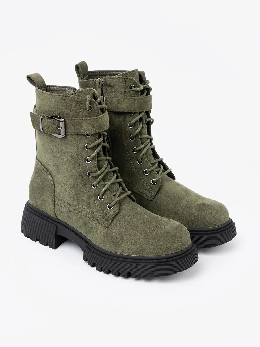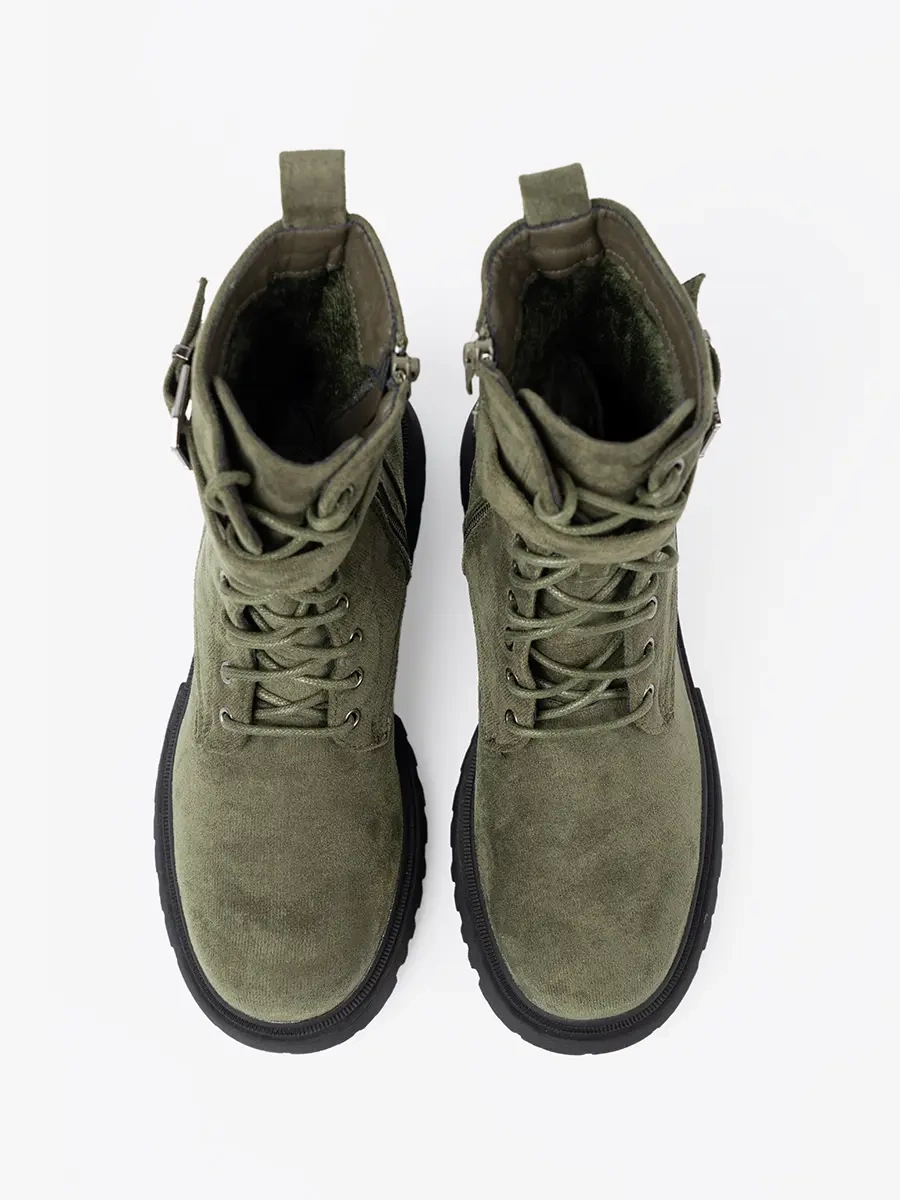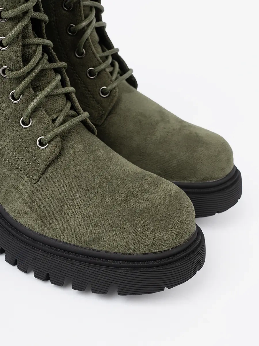 Tmavě zelené workery s hrubou podrážkou na šněrování
