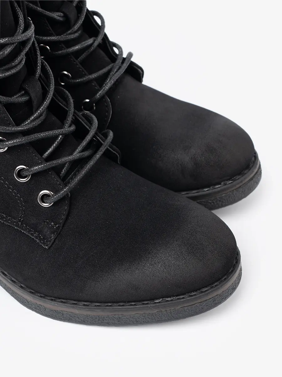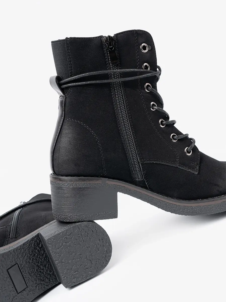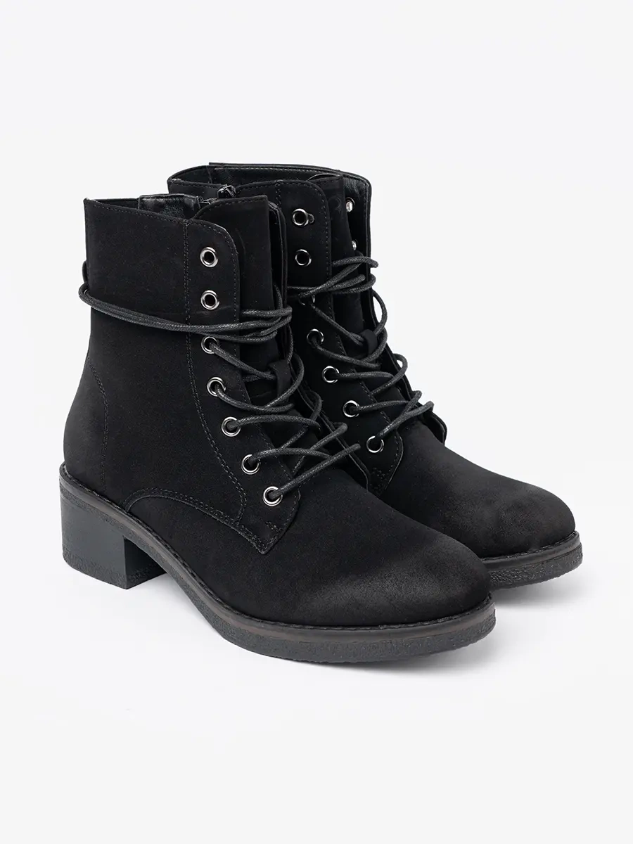 Černé kotníkové šněrovací boty na nízkém podpatku