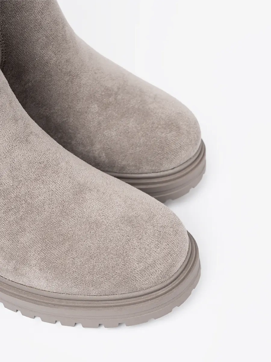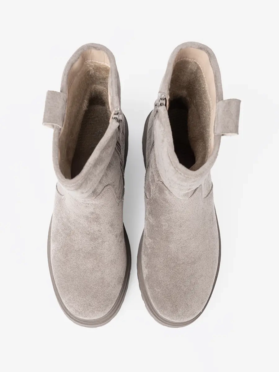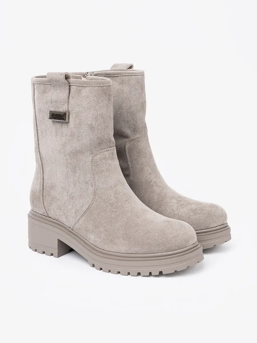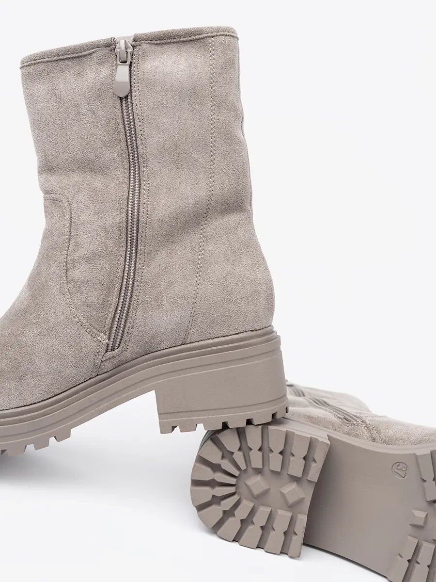 Tyto botky jsou vyrobeny z prvotřídní imitace zamszu, která nejenže vypadá skvěle, ale také je odolná a dlouho vydrží. Neutrální šedá barva dodává botkám univerzálnost a umožňuje snadné kombinování s různými outfity - od kancelářských až po volnočasové.