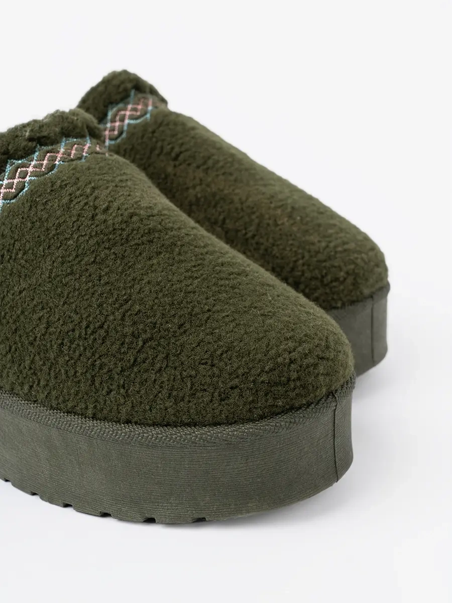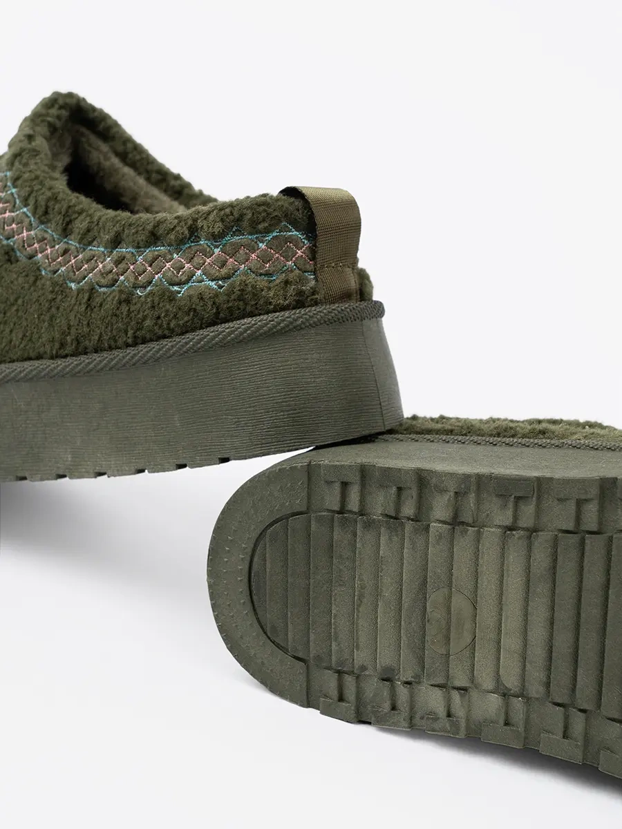 Tmavě zelené měkké boty a'la sněhule bez paty
