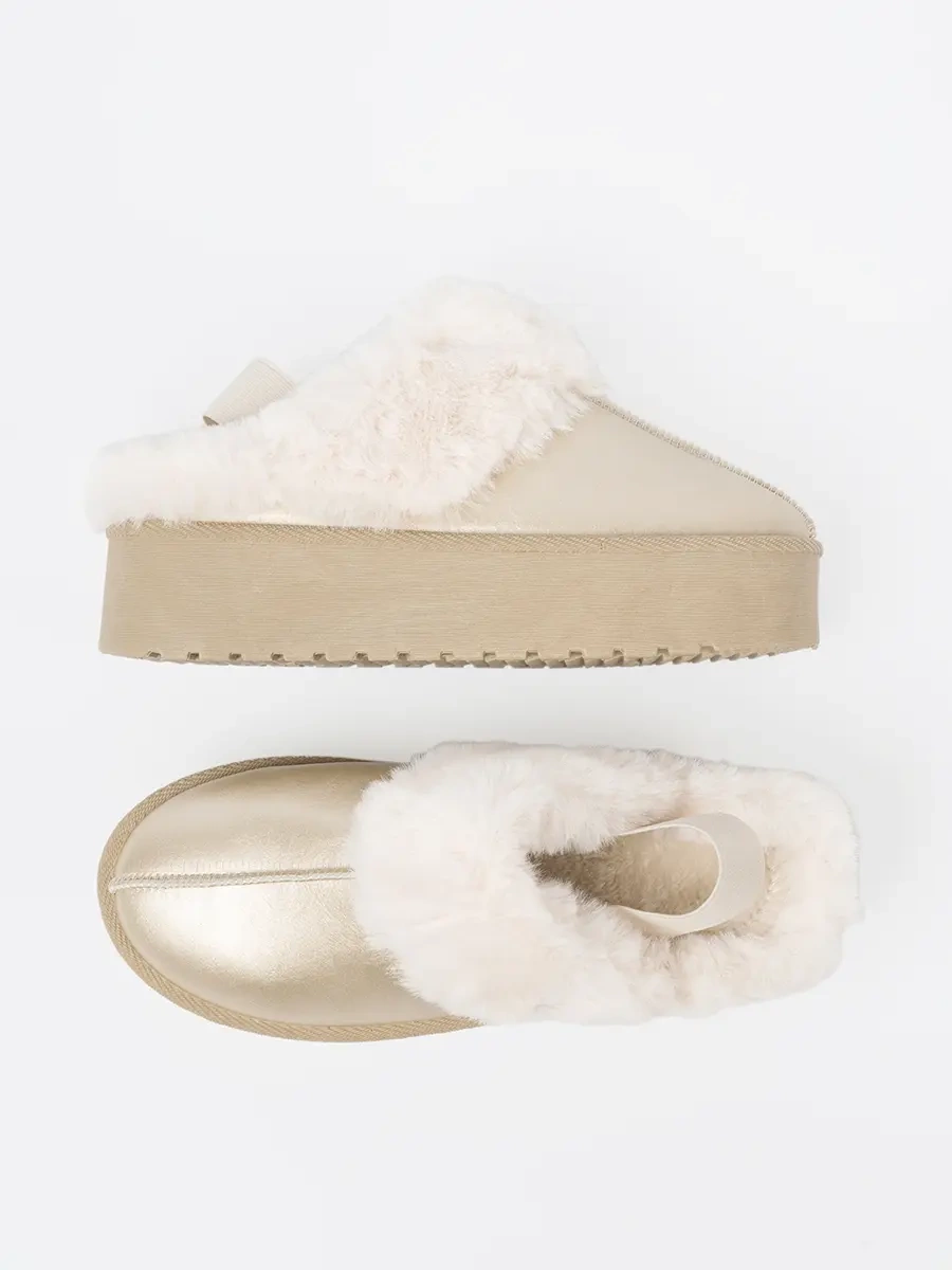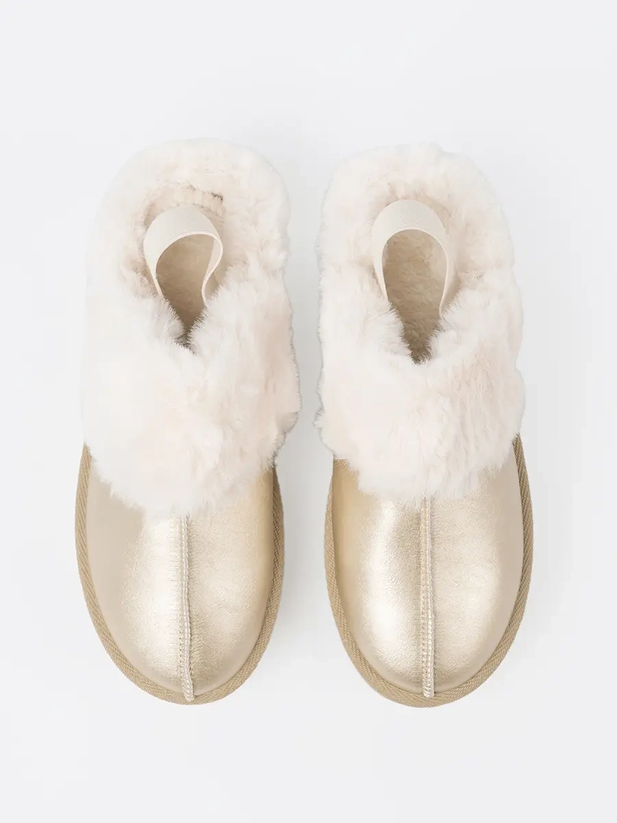 Zlaté boty a'la sněhule s bílou kožešinou