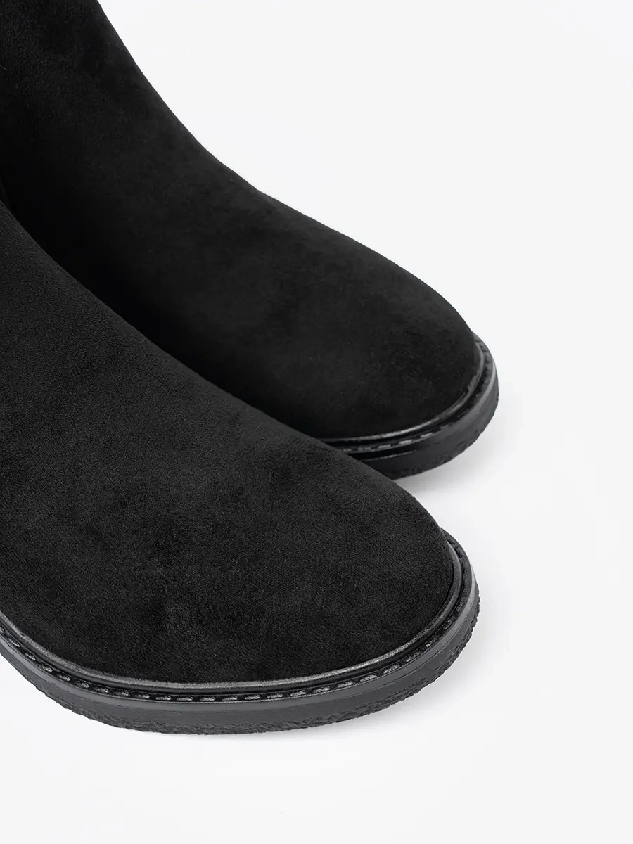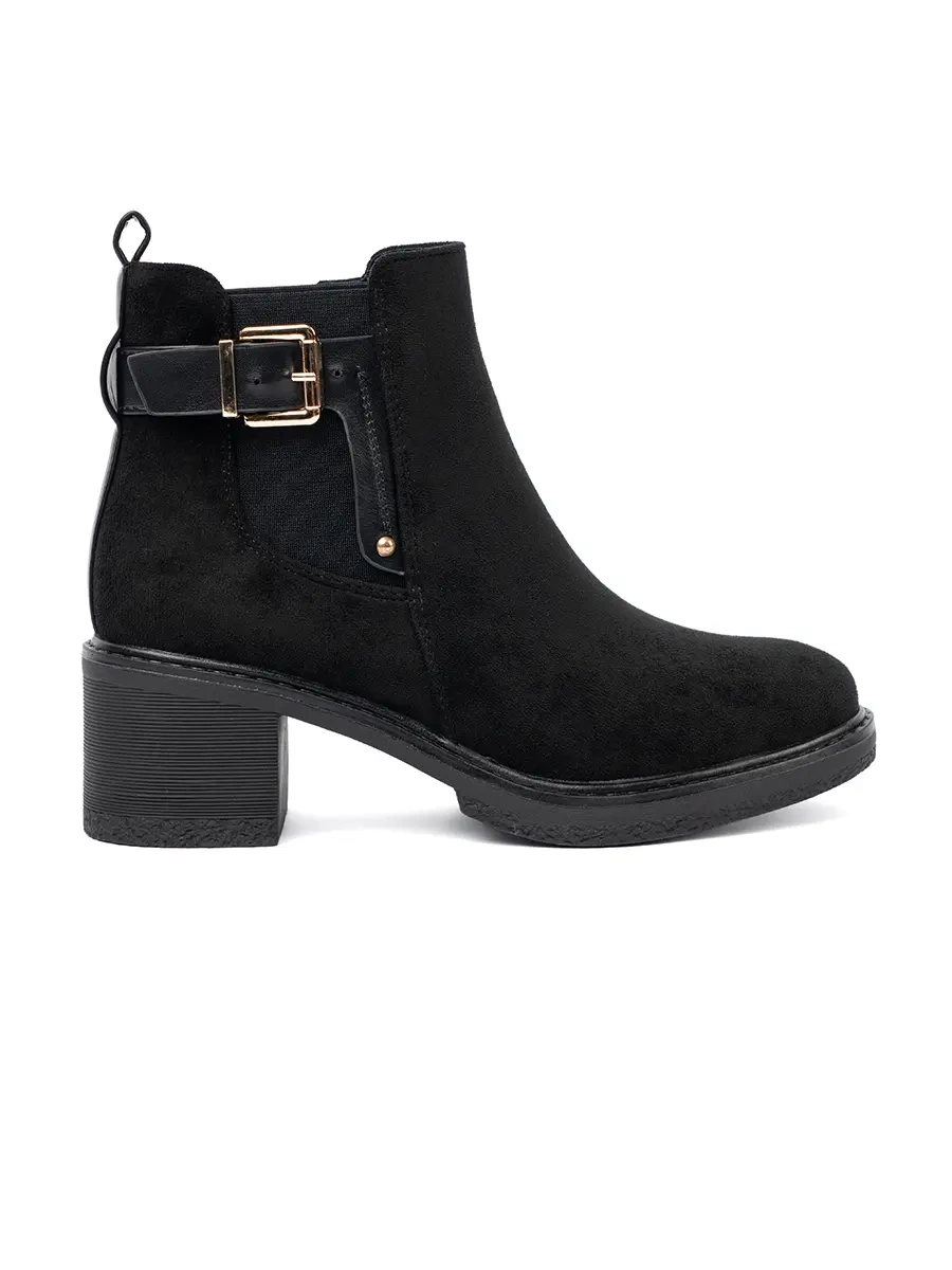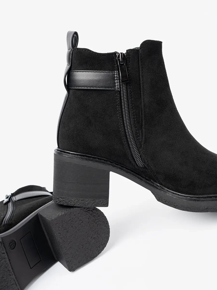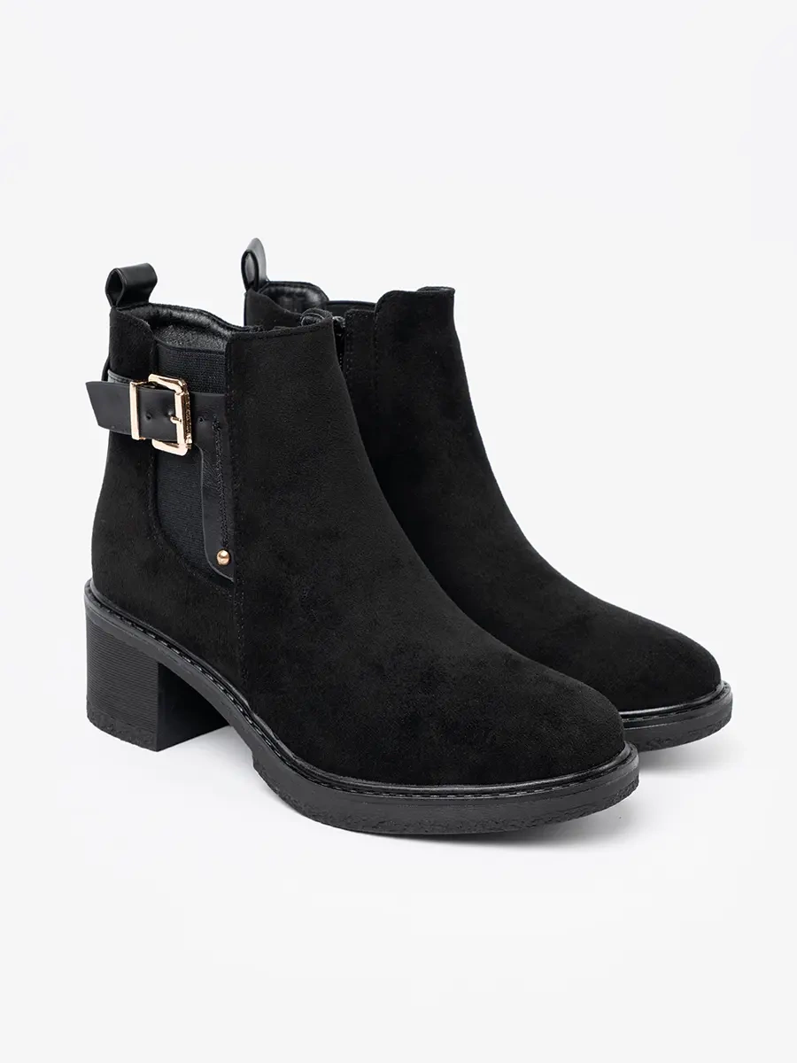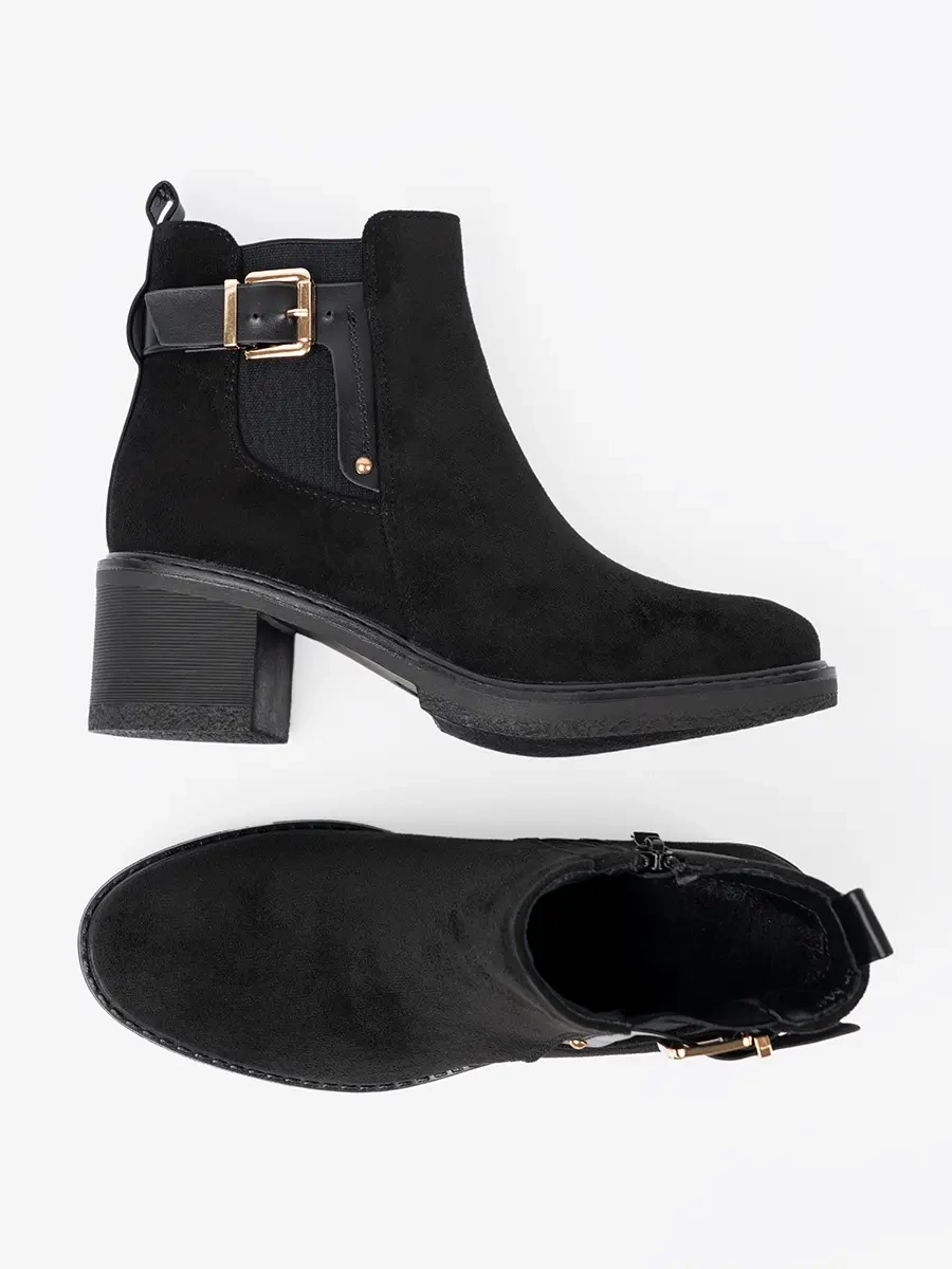 Naše černé botky jsou vyrobeny z vysoce kvalitní imitace zamszu, která je nejen stylová, ale také trvanlivá. Černá barva jim dodává elegantní a sofistikovaný vzhled, který se hodí jak k pracovním, tak i k večerním outfitům. Klamra na botách dodává moderní twist a je ideální pro ženy, které chtějí být vždy in.