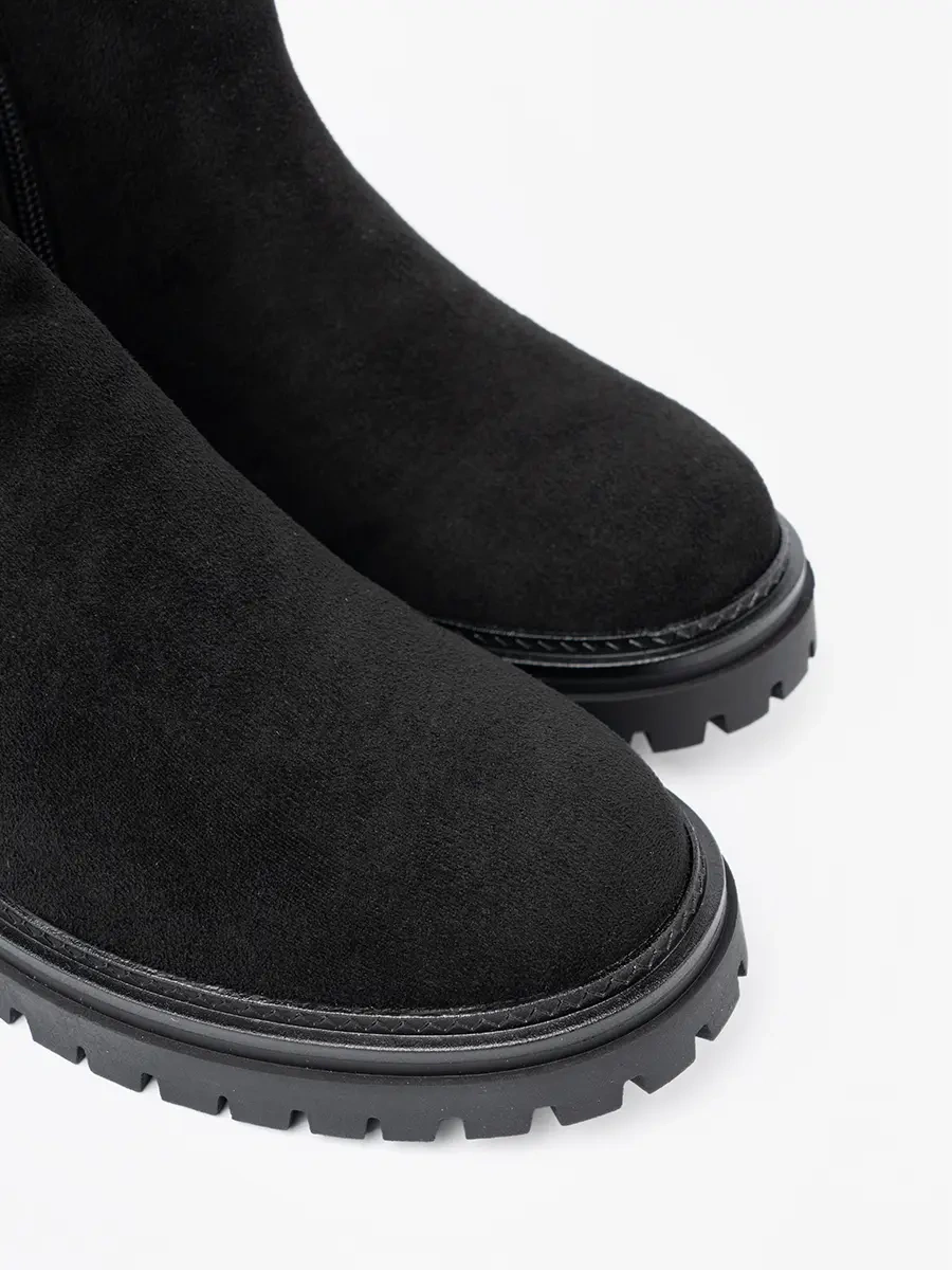Naše černé botky na platformě jsou navrženy pro ženy, které si cení kvality a komfortu. Jsou vyrobeny z kvalitní imitace zamszu, která nejen skvěle vypadá, ale také zaručuje dlouhou životnost bot. Černá barva jim dodává univerzálnost a hodí se jak k elegantním, tak i casual outfitům.