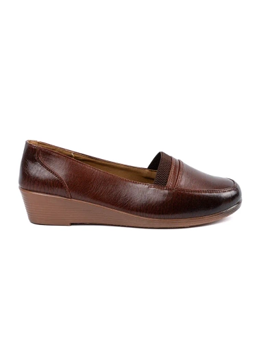 Béžové dámské mokasíny na klínku se zlatou ozdobou