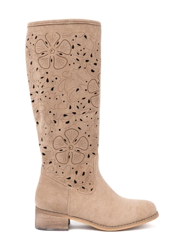 Semišové béžové dámské nízké kozačky na klínku s třásněmi