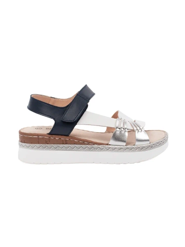 Bílo-tmavě modré sandály na platformě s metalickým zdobením