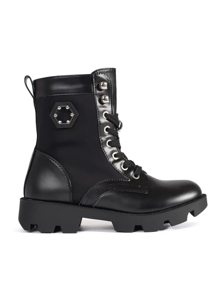 Černé kotníkové workery hladké na šněrování
