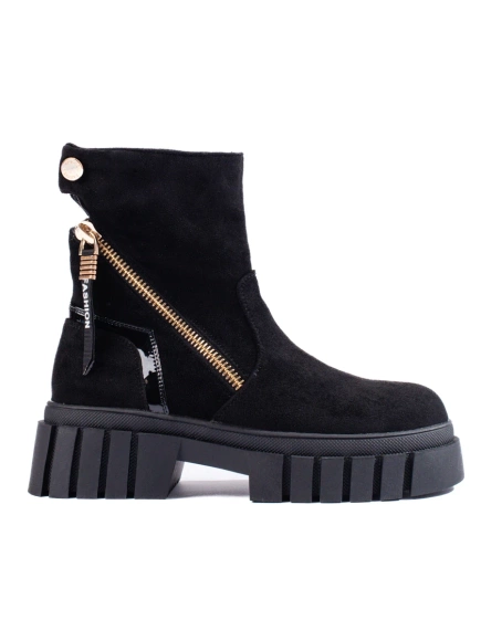 Dámské černé kozačky na silné podrážce z ekologické kůže