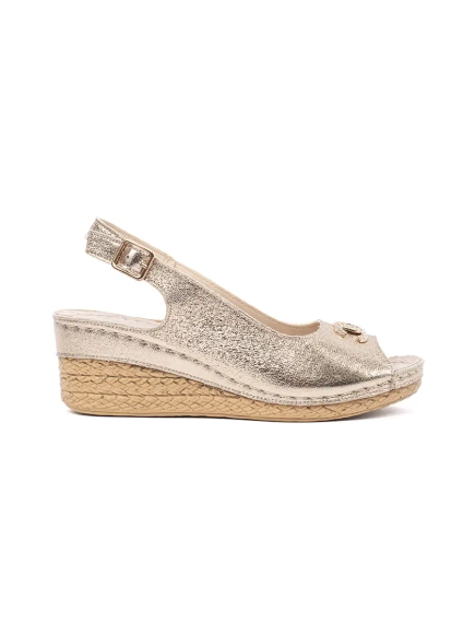 Zlaté sandály na klínku so sponou