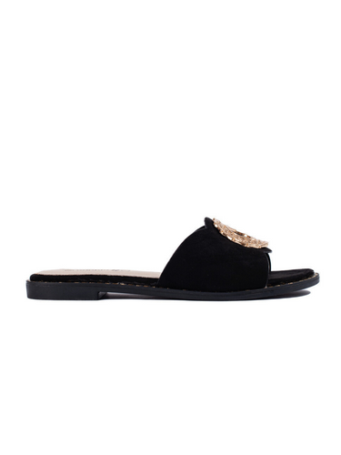 Černé dámské nazouváky s ozdobou