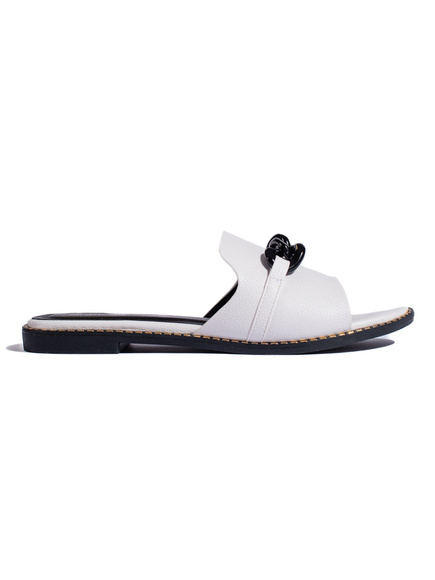 Dámské bílé pantofle s elegantní přezkou