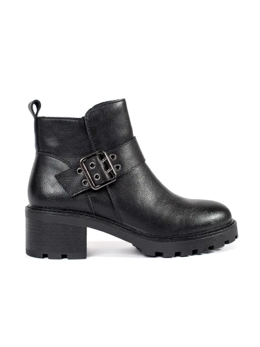 Černé kožené dámské kotníkové boty na podpatku s ozdobnou sponou Sergio Leone