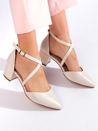 Dámské béžové lodičky Sergio Leone na ozdobném podpatku