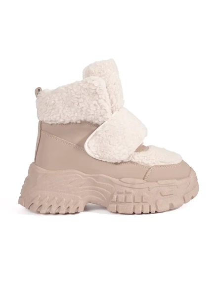 Béžové sněhule na platformě s kožešinou beránkového typu