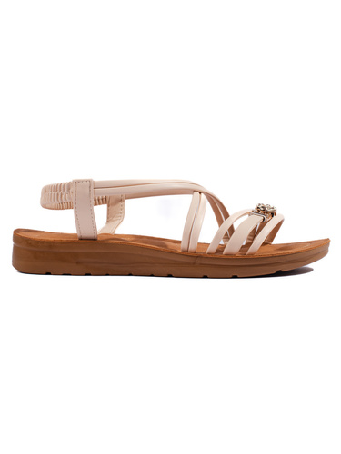 Béžové dámské ploché sandály s ozdobami