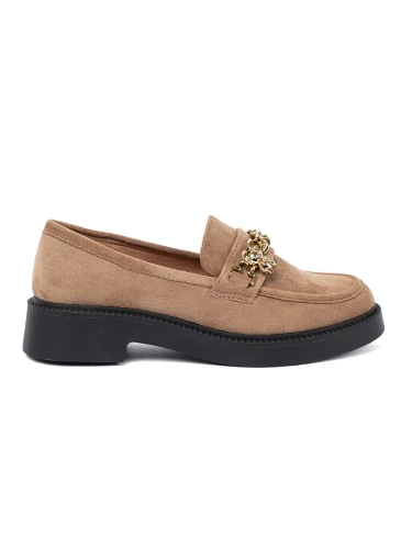 Tmavě béžové dírkované mokasíny se zlatými doplňky