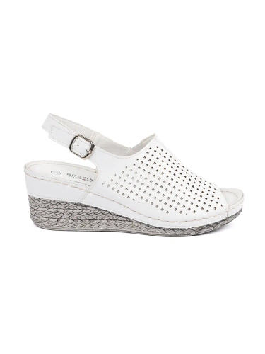 Bílo-tmavě modré sandály na platformě s metalickým zdobením