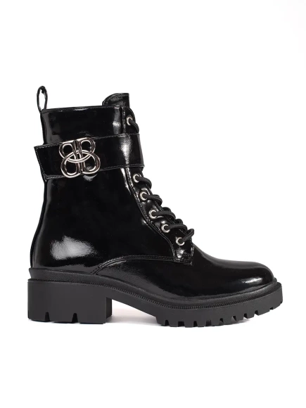 Černé lakované kotníkové boty s ozdobným zámkem