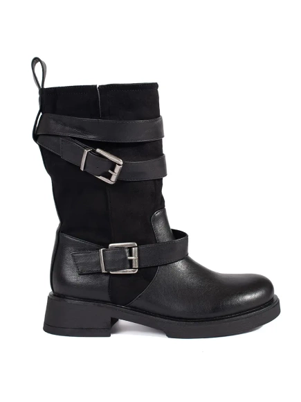 Tmavě hnědé kozačky na nízkém podpatku s přezkami