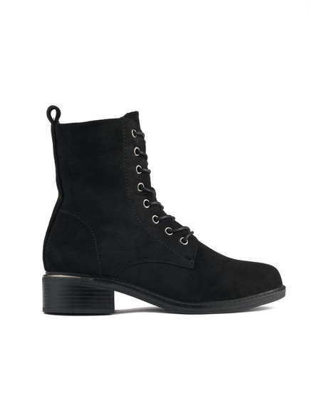 Černé dámské kotníkové boty na šněrování na nízkém podpatku