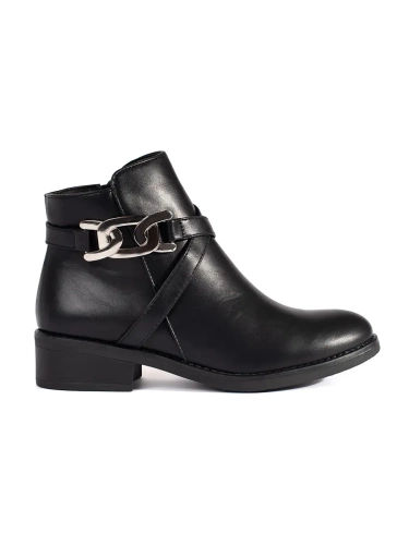 Černé lakované kotníkové boty s ozdobným zámkem