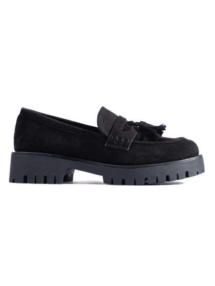 Semišové černé mokasíny na hrubé podrážce