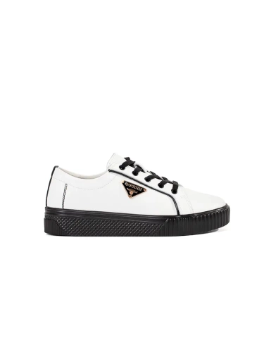 Kožené bílo-černé sneakersy na hrubé podrážce