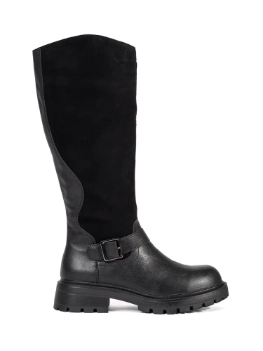 Černé kožené dámské kozačky oficírky na platformě Sergio Leone