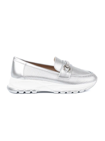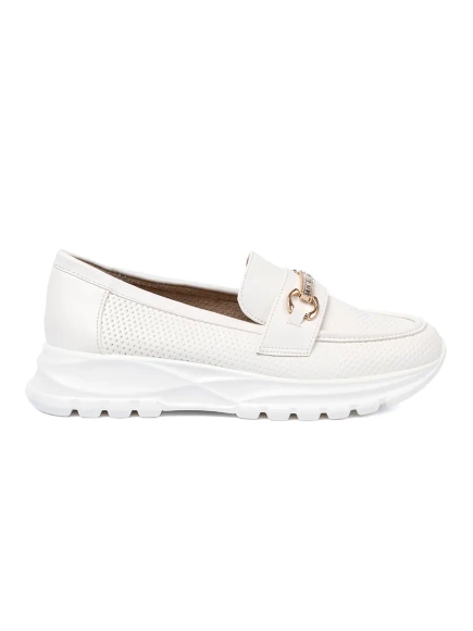 Kožené světle béžové mokasíny s řetízkem na platformě