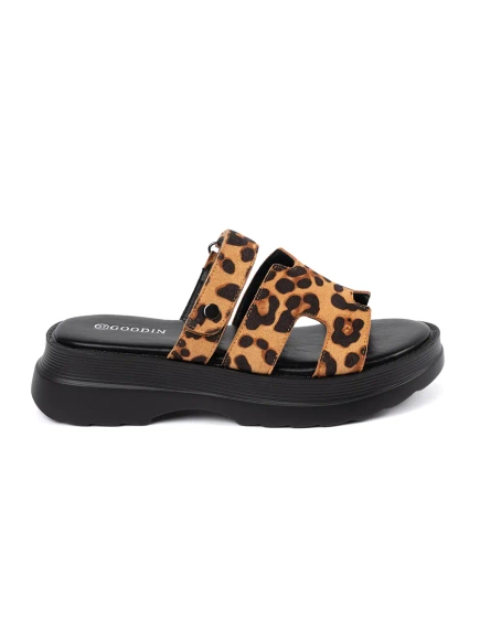 Sandály na platformě s běžovo-bílým károvaným vzorem