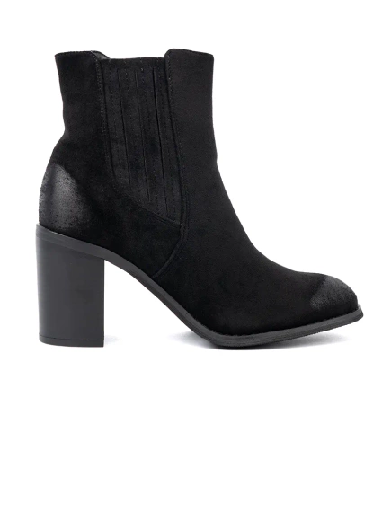 Černé semišové kotníkové boty na vysokém sloupku zateplené