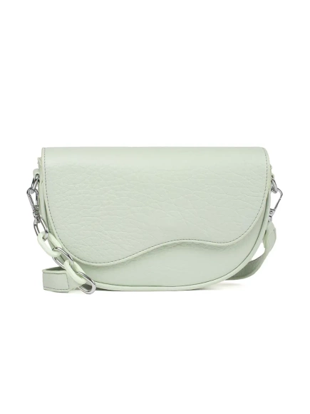 Světle béžová malá kabelka přes rameno se stříbrným řetízkem