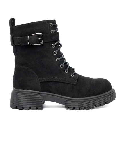 Černé workery na šněrování s kovovou ozdobou