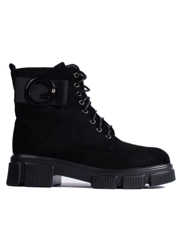 Šněrovací dámské členkové boty na podpatku Potocki z eko semiše
