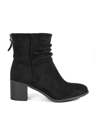 Černé dámské kotníkové boty na sloupku s ozdobným zipem a sponou