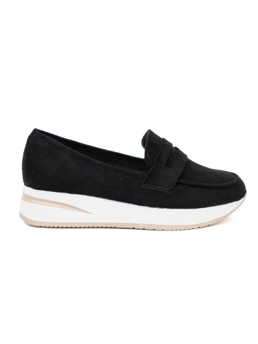 Černé dámské semišové polobotky na podpatku s kovovou ozdobou