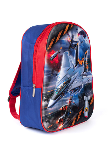 Modro-červený batoh pro kluka s vesmírnou lodí