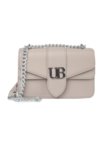 Světle béžová malá kabelka přes rameno se stříbrným řetízkem